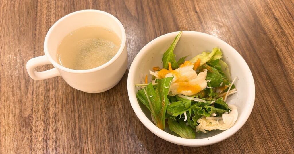 カレーセットにはスープとサラダもついてきます。