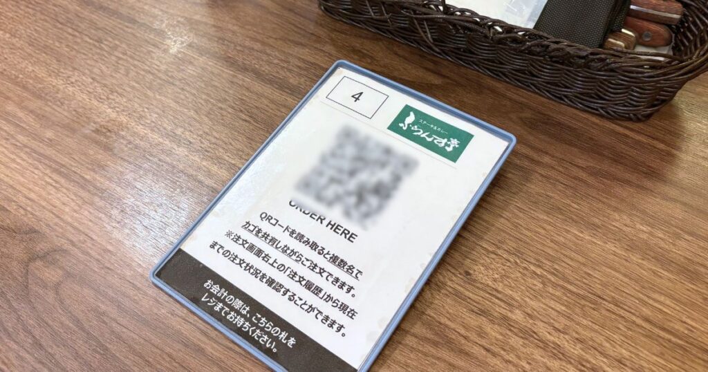 注文はテーブルごとに設置されているQRコードからモバイルオーダーです。